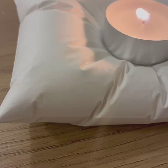 Ljuskudden är formad som en mjuk kudde – handgjuten i exklusivt gips och skapad för hand i Sverige