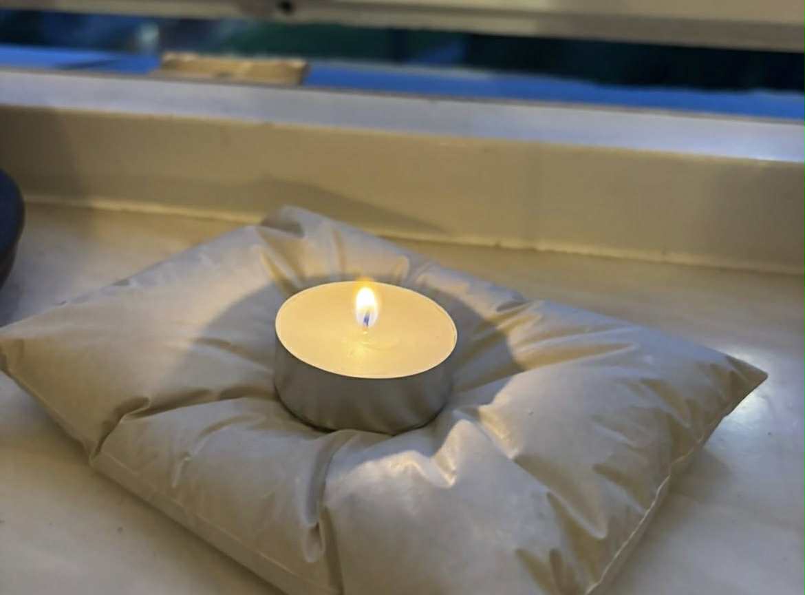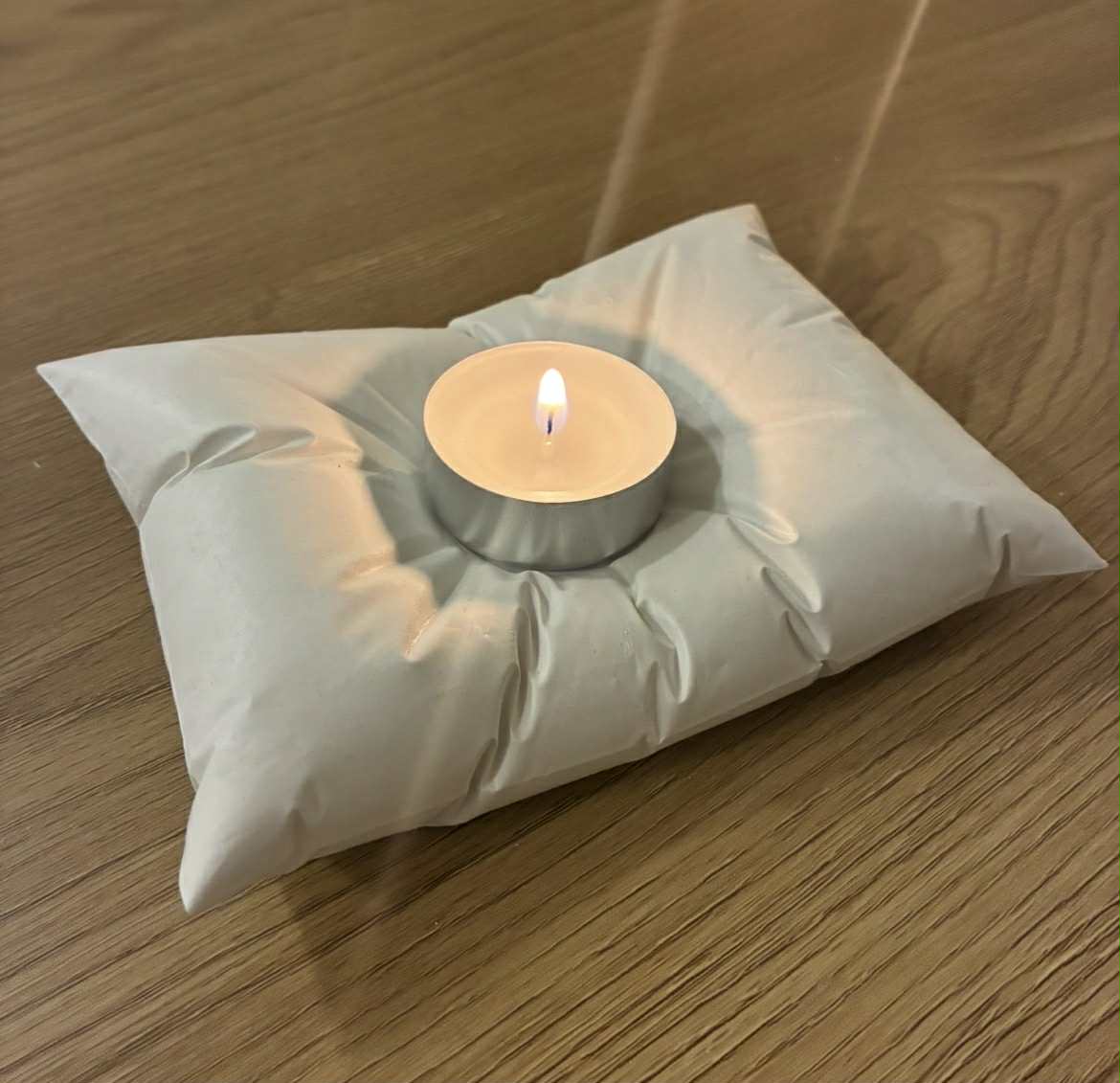 Ljuskudden är formad som en mjuk kudde – handgjuten i exklusivt gips och skapad för hand i Sverige. Varje exemplar är ett litet konstverk, med sina egna former som gör varje ljusstake helt unik.